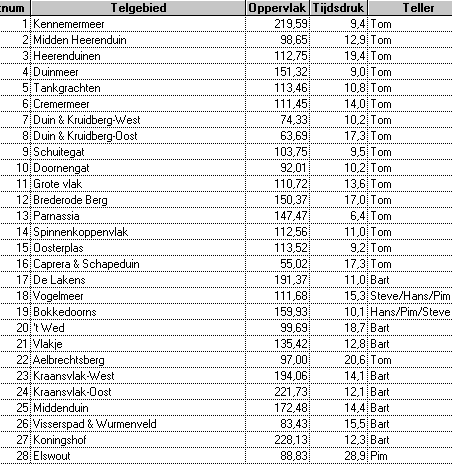 | Per telgebied zijn de bezoekdata met begin- en eindtijd opvraagbaar: -> Klik in de tabel op het gewenste telgebied. |