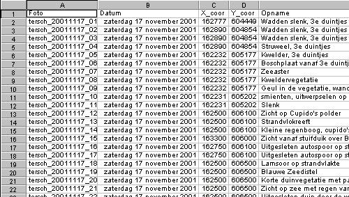 De foto-lokaties ingevoerd in Quattro-pro, maar met excell of paradox