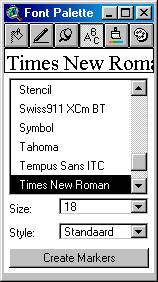 Dubbelklik op symbol; Selecteer een font. Klik dan op “create markers”. |